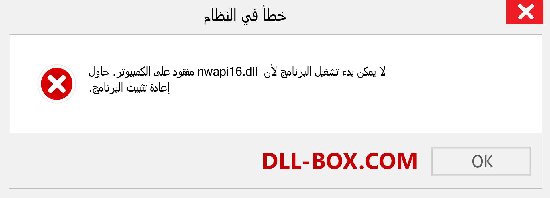 1. لا يمكن بدء تشغيل البرنامج لأن nwapi16.dll مفقود من جهاز الكمبيوتر الخاص بك. الرجاء إعادة تحميل البرنامج \ التطبيق لعلاج هذه المشكلة.